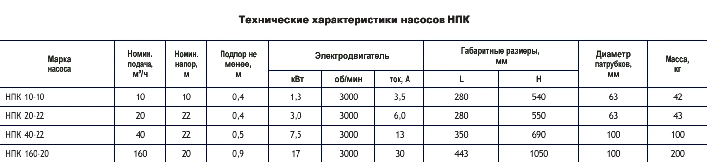 Насосы НПК не предназначены для перекачивания жидкостей во взрыво- и пожароопасных условиях.