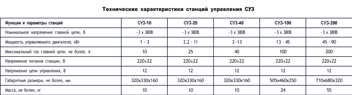 Станция СУЗ предназначена для управления трехфазными асинхронными электродвигателями погружных насосов и защиты их от перегрузок по току, короткого замыкания, неполнофазного режима работы и «сухого» хода.